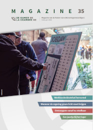 Hieronder vindt u een interactieve versie van het magazine nr. 35 in PDF. Op verschillende plaatsen kan u doorklikken naar de betreffende parlementaire documenten op onze website of naar andere webpagina’s met meer informatie. |